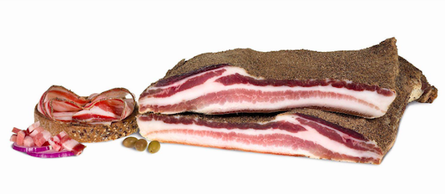 Si ottiene dalla parte ventrale magra del suino, salata e aromatizzata con pepe e altre spezie. Al taglio la fetta è caratterizzata dal tipico alternarsi di strati rosso vivo e bianco rosato. Al palato, la fetta si presenta morbida con tendenza a sciogliersi.